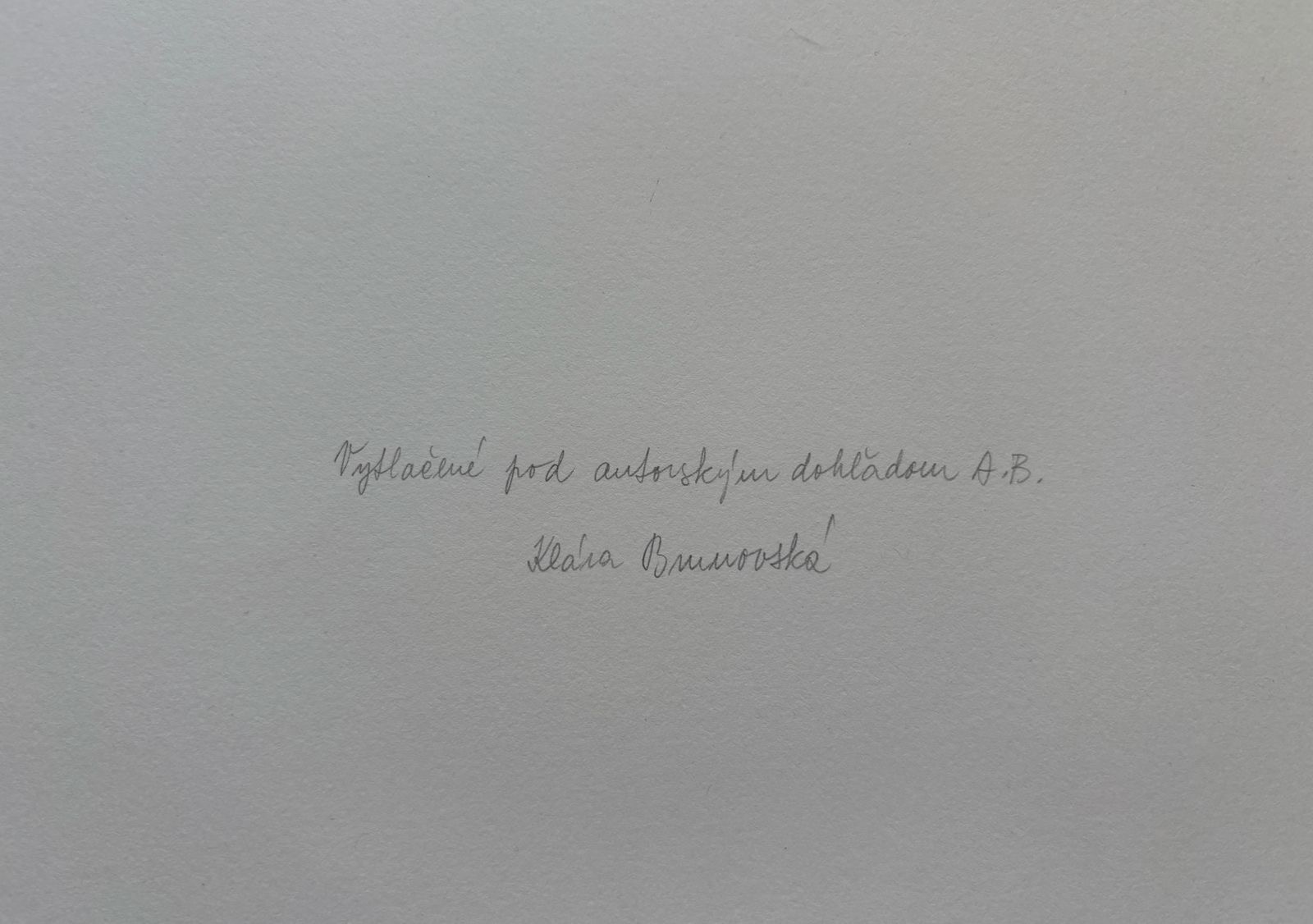 Signované slepotlačou, zo zadnej strany potvrdenie o originalite od Kláry Brunovskej